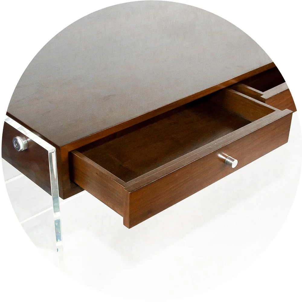 A playful combination of the transparency of Lucite and beautiful walnut, mahogany, or rose wood components, the Arthur Collection appears to float weightlessly in midair.