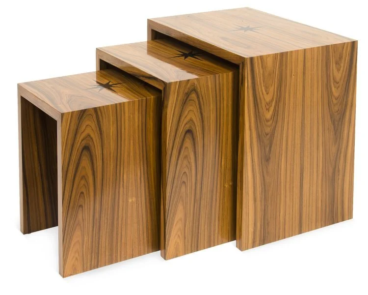 The rosewood table is handcrafted with traditional joinery; each piece is numbered and stamped.