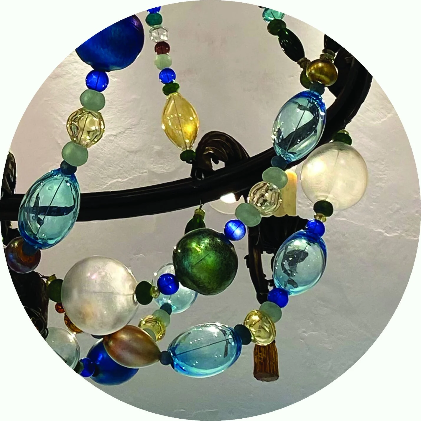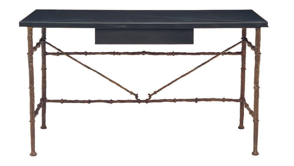 The Negresco Collection is a fanciful, hand-sculpted tactile group combining bronze, leather, and glass or stone.